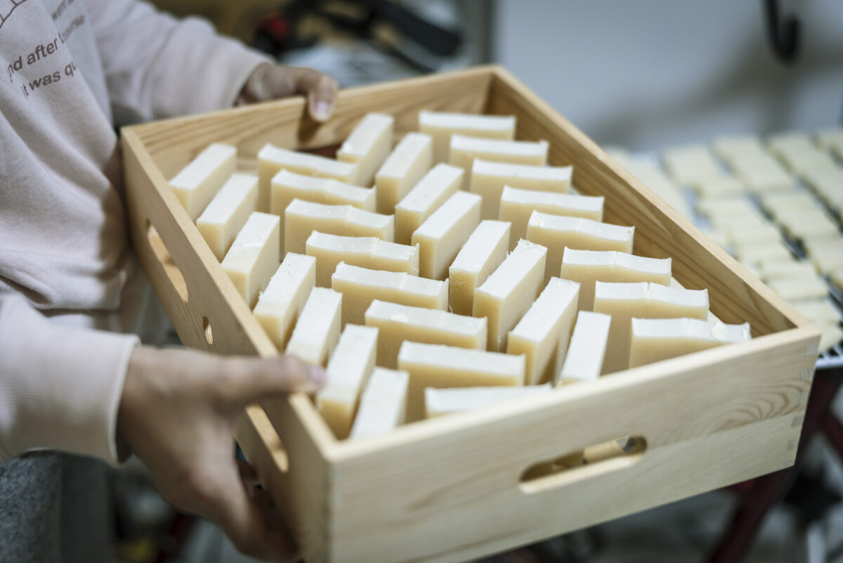 白山市内でハーブの栽培や無添加の手づくり石鹸をつくるマレーシア出身のアイスさん。白峰の伝統織物、牛首紬の原料となる玉繭(たままゆ)から出る糸くずを利活用したシルク石鹸は、香料不使用の自然な香りとしっとりなめらか、きめ細かな泡立ちで、顔、体はもちろん髪にも安心して使えます。ご宿泊のお客様には、各コテージにアメニティーとしてご用意しており、浴室にてお使いいただけます。また、薬膳師の資格を持つアイスさん自ら調合されるハーブティーは、免疫力、リラックス、消化促進など、その日の体調に合わせて楽しめるハーブティーを製造されており、身体の内側から整えてくれます。今回はお部屋でゆっくりとお寛ぎいただくアイテムとして、おすすめのハーブティーをご用意いたしました。
