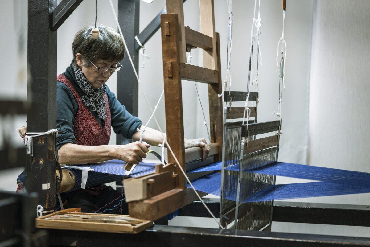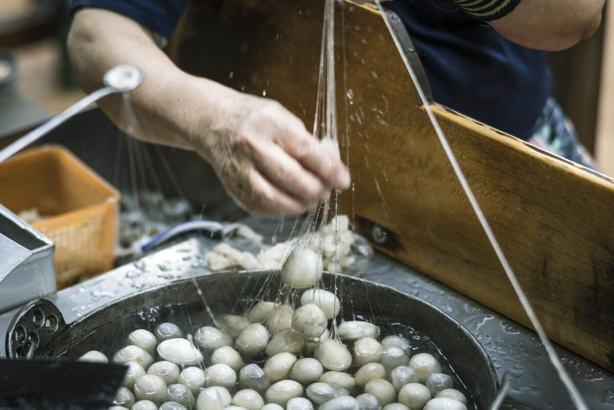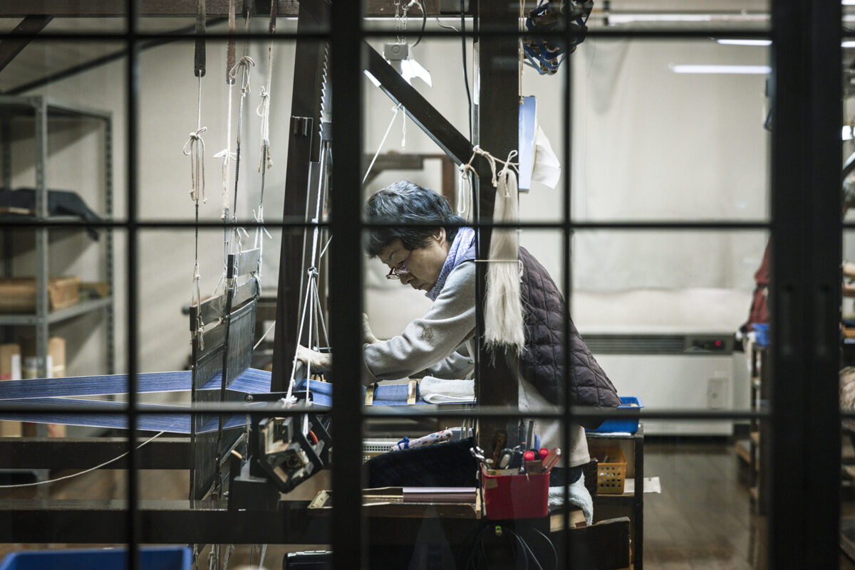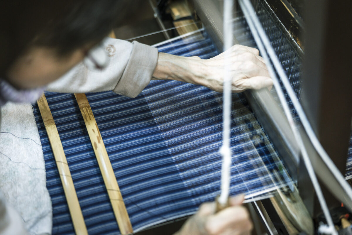 日本三大紬の一つである牛首紬は、800年以上の歴史を持つ日本を代表する高級紬です。白峰(旧牛首村)は豪雪地そして急峻な地形のため稲作ではなく、養蚕を収入源として古くからこの地域の生活を支えていました。現在はたった2軒の生産者がこの伝統工芸品を守り継承しています。2匹の蚕がつくる玉繭(たままゆ)と呼ばれる特別な繭から糸を挽くことによって生まれる独特の風合いが牛首紬の最大の特徴です。製糸から機織りまで全工程が職人による手作業。その牛首紬のストーリーと共に新たな付加価値をつけ「MIZEN」ブランドとして世界のファッション業界へ発信しているのが元エルメスデザイナーの寺西俊輔さん。共にタッグを組み牛首紬の生産販売を行う西山産業開発(株)代表の西山博之さん。職人を主役として伝統の技に洋裁の世界観を重ね、世界に誇る牛首紬の新たな可能性を発信し続けています。